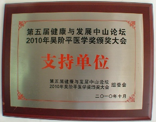 2010年度我司榮獲吳階平醫(yī)學(xué)頒獎大會《支持單位》
