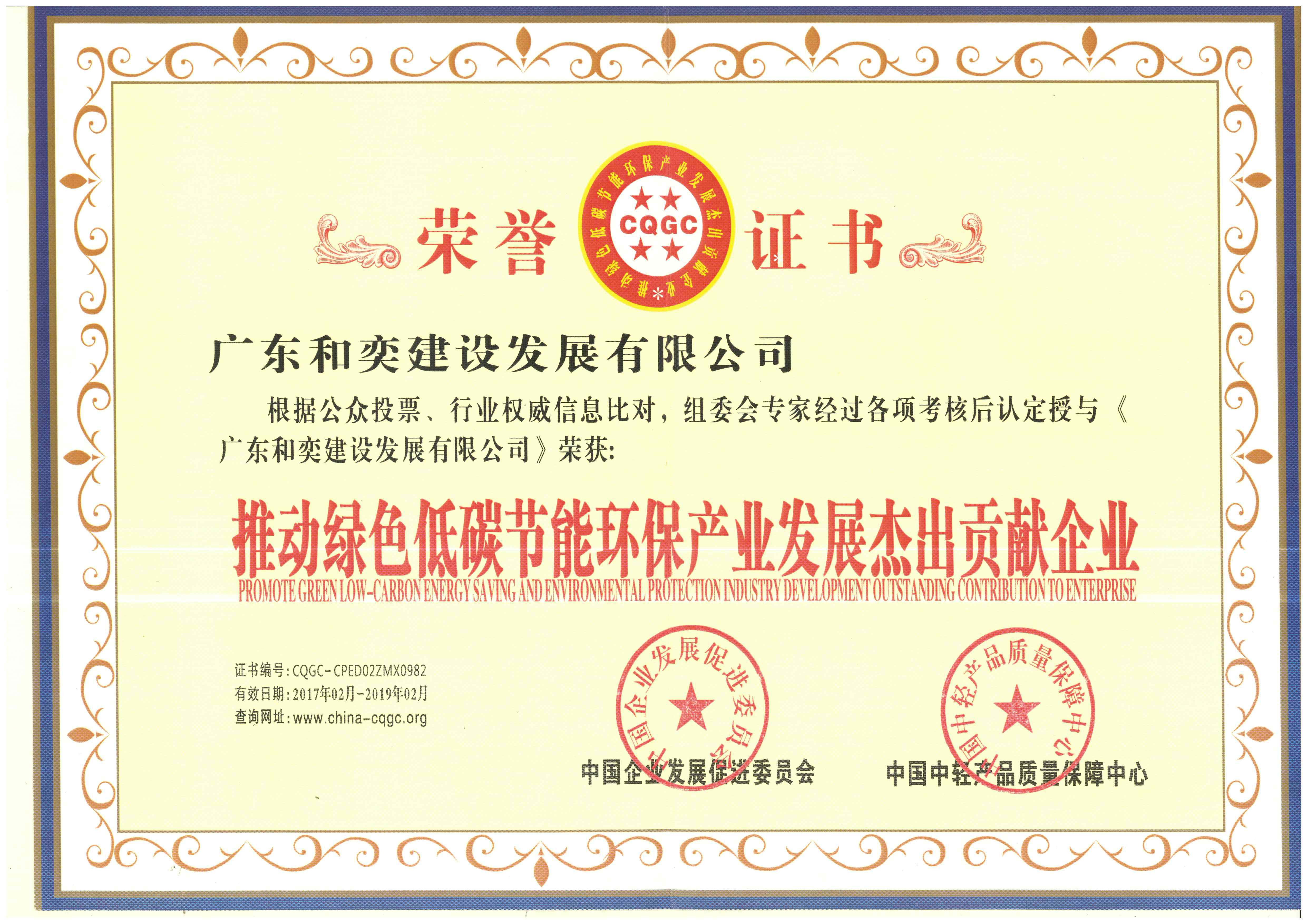 “廣東和奕建設(shè)發(fā)展有限公司”榮獲《綠色低碳節(jié)能環(huán)保產(chǎn)業(yè)發(fā)展杰出貢獻企業(yè)》榮譽稱號!